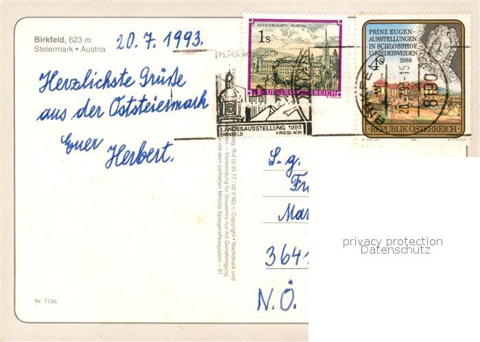 73091522 alte Postkarte Birkfeld Fliegeraufnahme postalisch gelaufen Erhaltung siehe scans [KathaD81] KatCode: 11390224061705