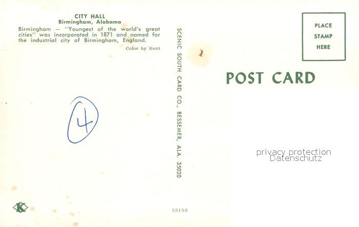 72956937 Birmingham Alabama City Hall postalisch nicht gelaufen Erhaltung siehe scans [FriedD77] KatCode: 14140010000000