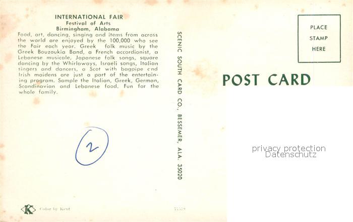 72944231 Birmingham Alabama International Fair Festival of Arts postalisch nicht gelaufen Erhaltung siehe scans [WerneD78] KatCode: 14140010000000