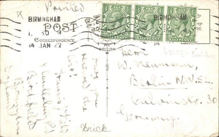 11384600 old postcard Birmingham Colmore Row postalisch gelaufen Erhaltung mit Maengel KatCode: 11570UKG3G31CN