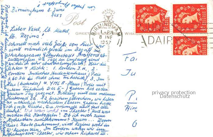 74009581 old postcard BIRMINGHAM UK New Street Hall of Memory Fountain Chamberlain Place Colmore Row Victoria Square postalisch gelaufen Erhaltung siehe scans [WerneD78] KatCode: 11570UKG3G31CN