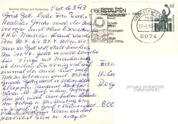73742039 alte Postkarte Birnau Bodensee Basilika Birnau Fliegeraufnahme postalisch gelaufen Erhaltung siehe scans [FriedD77] KatCode: 11110008435066