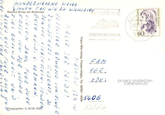 73025528 alte Postkarte Birnau Fliegeraufnahme Basilika postalisch gelaufen Erhaltung siehe scans [KathaD81] KatCode: 11110008435066