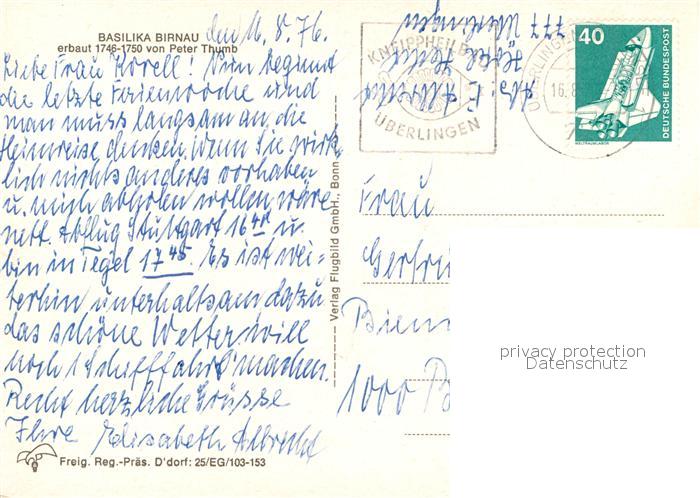 72931571 alte Postkarte Birnau Fliegeraufnahme Basilika erbaut Peter Thumb postalisch gelaufen Erhaltung siehe scans [KathaD81] KatCode: 11110008435066