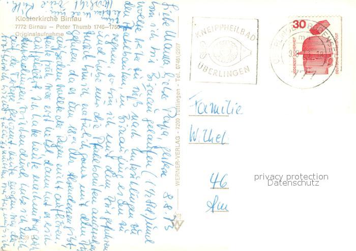 73667534 alte Postkarte Birnau Klosterkirche am Bodensee Alpenkette Original Fliegeraufnahme postalisch gelaufen Erhaltung siehe scans [FriedD77] KatCode: 11110008435066