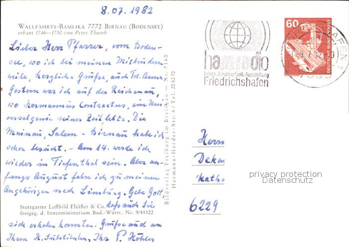 72553190 alte Postkarte Birnau Wallfahrts-Basilika postalisch gelaufen Erhaltung siehe scans [AntonD74] KatCode: 11110008435066