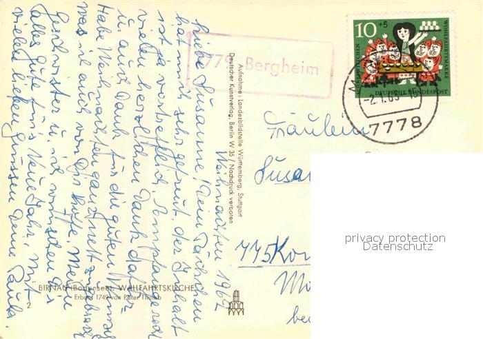 72769949 alte Postkarte Birnau Wallfahrtskirche postalisch gelaufen Erhaltung siehe scans [AndreD76] KatCode: 11110008435066