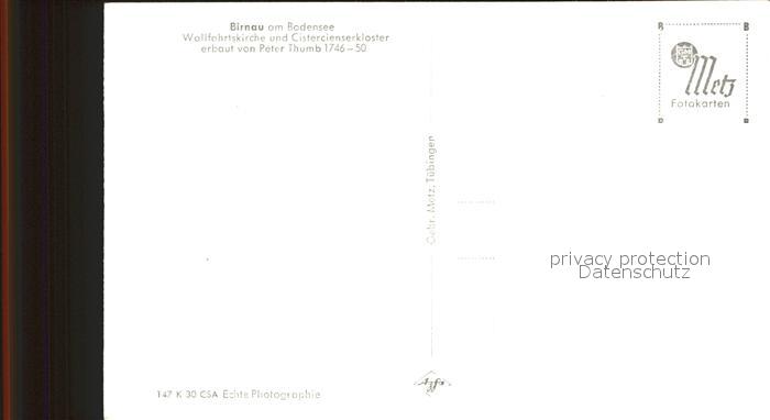 72081327 Birnau Wallfahrtskirche Cistercienserkloster Peter Thumb 18. Jhdt. postalisch nicht gelaufen Erhaltung siehe scans KatCode: 11110008435066