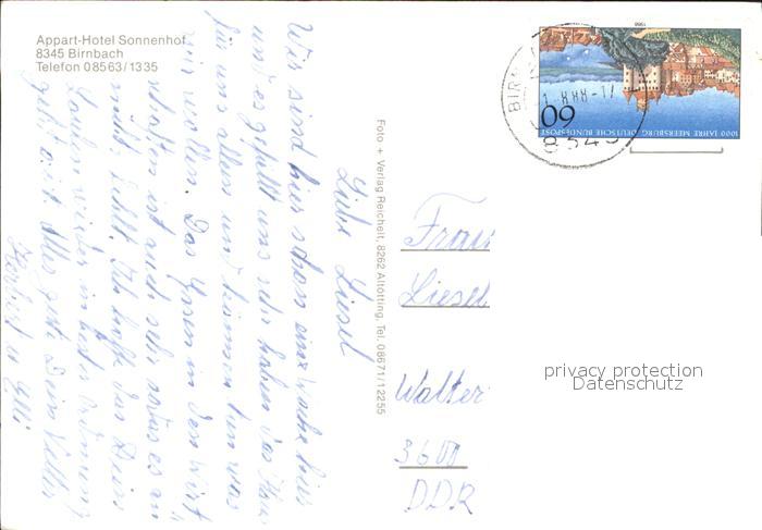 71930099 alte Postkarte Birnbach Rottal Appart Hotel Sonnenhof postalisch gelaufen Erhaltung siehe scans KatCode: 11110009277113