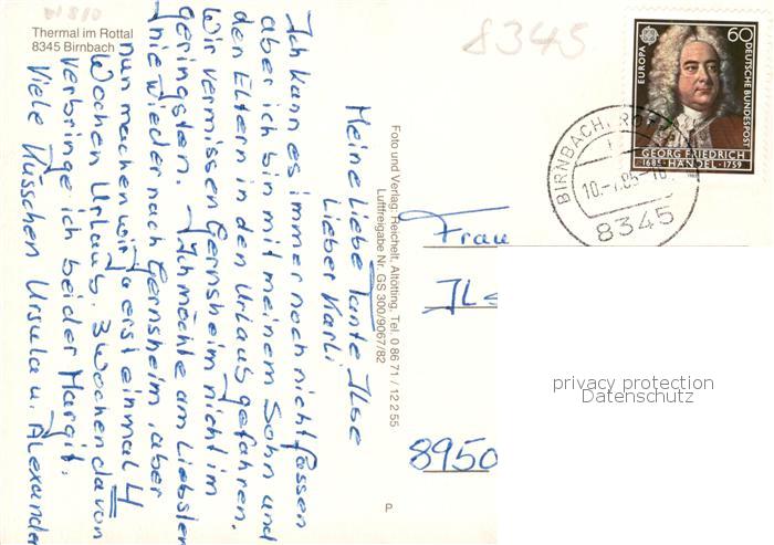 73868506 alte Postkarte Birnbach Rottal Fliegeraufnahme mit Rottal Therme postalisch gelaufen Erhaltung siehe scans [WerneD78] KatCode: 11110009277113