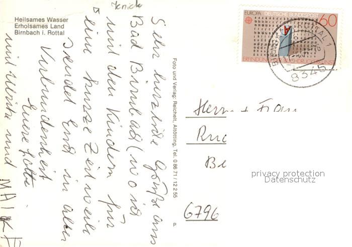 72936358 alte Postkarte Birnbach Rottal Kirche Skulptur Schwimm und Hallenbad postalisch gelaufen Erhaltung siehe scans [WerneD78] KatCode: 11110009277113