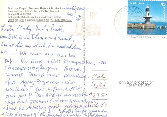 73597225 alte Postkarte Birnbach Rottal Kurhotel Hofmark Gaststube Terrasse Rottal Therme postalisch gelaufen Erhaltung siehe scans [WerneD78] KatCode: 11110009277113
