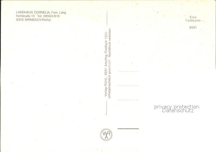 72284935 Birnbach Rottal Landhaus Cornelia postalisch nicht gelaufen Erhaltung siehe scans KatCode: 11110009277113