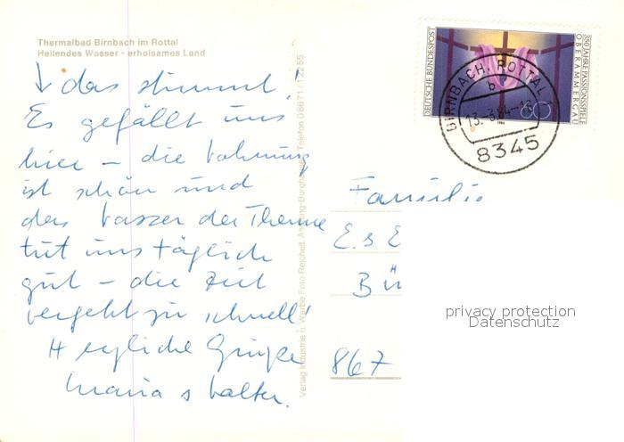 73041759 alte Postkarte Birnbach Rottal Ortsansicht Rottal Terme Ruheraum Thermalschwimmbad postalisch gelaufen Erhaltung siehe scans [WerneD78] KatCode: 11110009277113