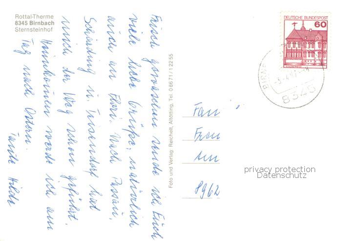 73768686 alte Postkarte Birnbach Rottal Rottal Therme Sternsteinhof postalisch gelaufen Erhaltung siehe scans [FriedD77] KatCode: 11110009277113