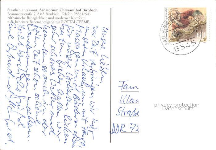 72310585 alte Postkarte Birnbach Rottal Sanatorium Chrysantihof Birnbach postalisch gelaufen Erhaltung siehe scans KatCode: 11110009277113