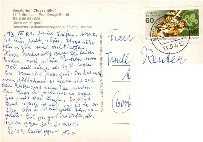 73924058 alte Postkarte Birnbach Rottal Sanatorium Chrysantihof Birnbach Schwimmbad postalisch gelaufen Erhaltung siehe scans [FriedD77] KatCode: 11110009277113