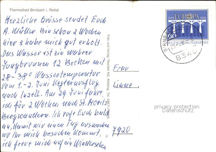 72599703 alte Postkarte Birnbach Rottal Thermalbad Marktplatz postalisch gelaufen Erhaltung siehe scans [FriedD77] KatCode: 11110009277113