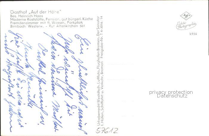 31708421 Birnbach Westerwald Fliegeraufnahme Gasthaus Auf der Hoehe postalisch nicht gelaufen Erhaltung siehe scans KatCode: 11110007132009