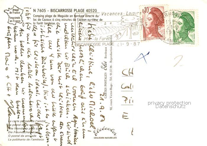 13320633 carte postale Biscarosse Camping Plage Maguide Lac de Cazaux postalisch gelaufen Erhaltung siehe scans [PaolaD17] KatCode: 11170040240192