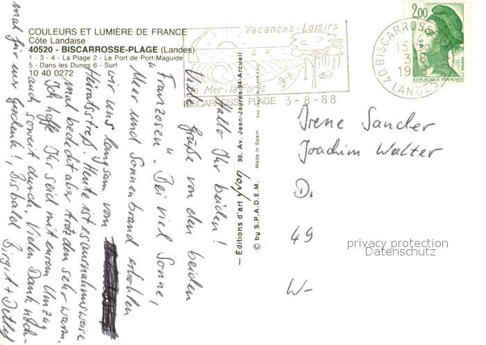 13060985 carte postale Biscarrosse-Plage La Plage Le Port de Port Maguide Dans les Dunes Surf postalisch gelaufen Erhaltung siehe scans [FriedD77] KatCode: 11170040240046