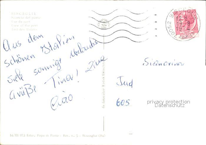 old postcard Bisceglie Hafen postalisch gelaufen Erhaltung siehe scans