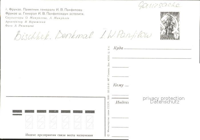 Bischkek Frunse Frunza Frunze Denkmal Panfilow postalisch nicht gelaufen Ganzsache (eingedruckte Briefmarke) Erhaltung siehe scans