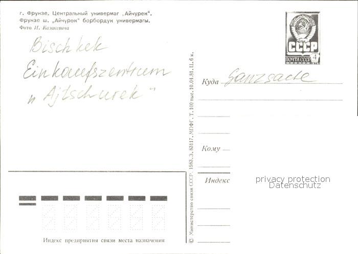 Bischkek Frunse Frunza Frunze Einkaufszentrum Ajtschurek postalisch nicht gelaufen Ganzsache (eingedruckte Briefmarke) Erhaltung siehe scans