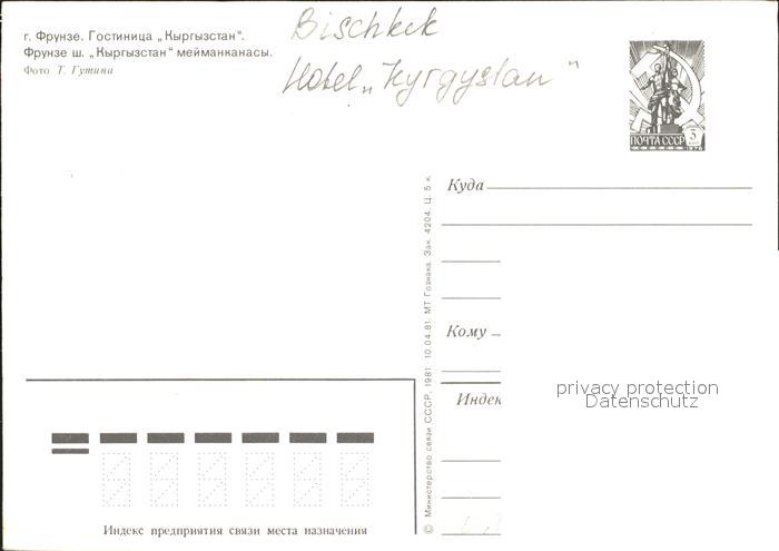 Bischkek Frunse Frunza Frunze Hotel Kyrgystan postalisch nicht gelaufen Ganzsache (eingedruckte Briefmarke) Erhaltung siehe scans