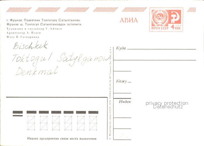 Bischkek Frunse Frunza Frunze Toktogul Satylganow Denkmal postalisch nicht gelaufen Ganzsache (eingedruckte Briefmarke) Erhaltung siehe scans
