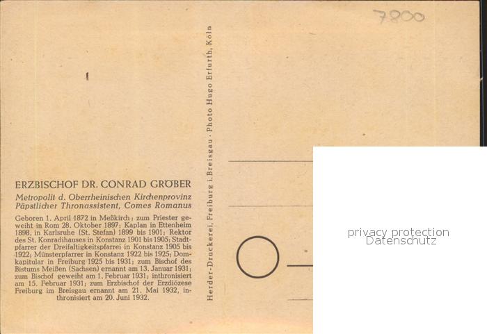 Bischof Religion Dr. Conrad Groeber postalisch nicht gelaufen Erhaltung siehe scans
