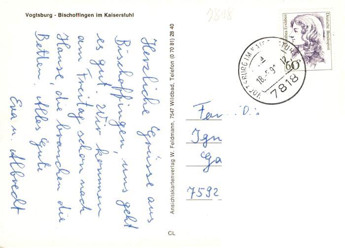 73929079 alte Postkarte Bischoffingen Dorfstrasse Panorama Brunnen Krankenhaus Winzergenossenschaft postalisch gelaufen Erhaltung siehe scans [WerneD78] KatCode: 11110008315133
