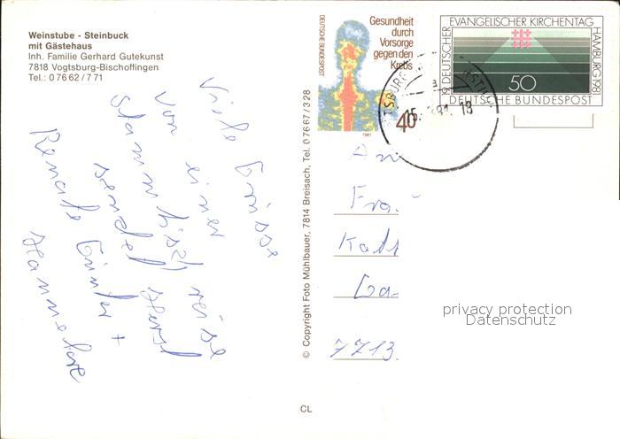 71845298 alte Postkarte Bischoffingen Weinstube Steinbuck mit Gaestehaus postalisch gelaufen Erhaltung siehe scans KatCode: 11110008315133