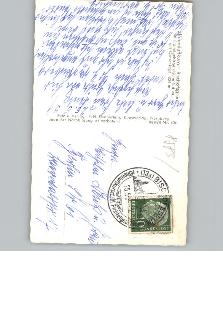 31170690 Bischofsgruen postalisch nicht gelaufen KatCode: 11110009472121