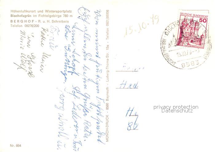 73072510 alte Postkarte Bischofsgruen Berghof Restaurant postalisch gelaufen Erhaltung siehe scans [WerneD78] KatCode: 11110009472121