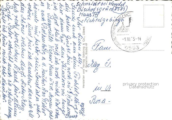 72117727 alte Postkarte Bischofsgruen Fernsehturm Ochsenkopfturm Postplatz postalisch gelaufen KatCode: 11110009472121