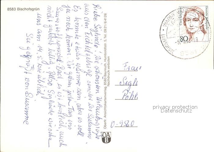 72568265 alte Postkarte Bischofsgruen Freibad Fliegeraufnahme postalisch gelaufen Erhaltung siehe scans [LiesaD40] KatCode: 11110009472121