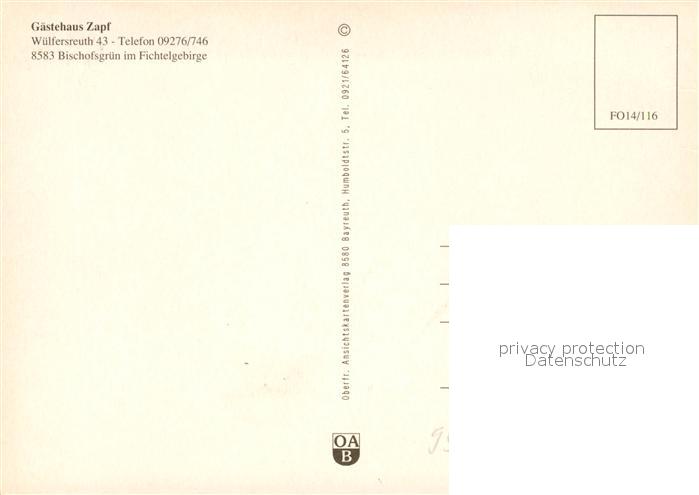 73050766 Bischofsgruen Gaestehaus Zapf postalisch nicht gelaufen Erhaltung siehe scans [KathaD81] KatCode: 11110009472121