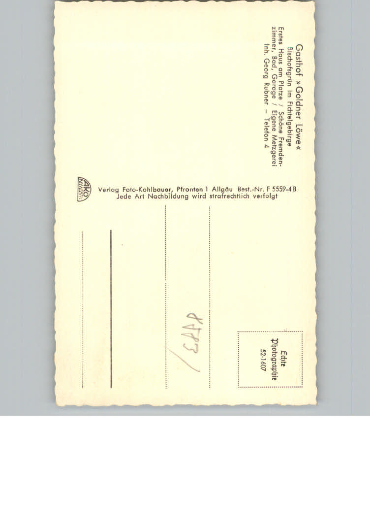31162777 Bischofsgruen Gasthof Goldener Loewe postalisch nicht gelaufen KatCode: 11110009472121