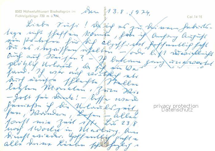 72625735 Bischofsgruen Gesamtansicht Hoehenluftkurort Fichtelgebirge postalisch nicht gelaufen Erhaltung siehe scans [FriedD77] KatCode: 11110009472121