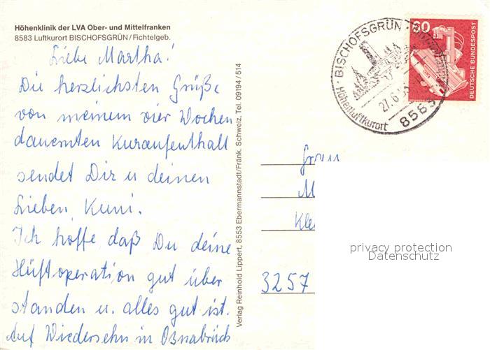 72740858 alte Postkarte Bischofsgruen Hoehenklinik der LVA Ober- und Mittelfranken postalisch gelaufen Erhaltung siehe scans [LiesaD40] KatCode: 11110009472121