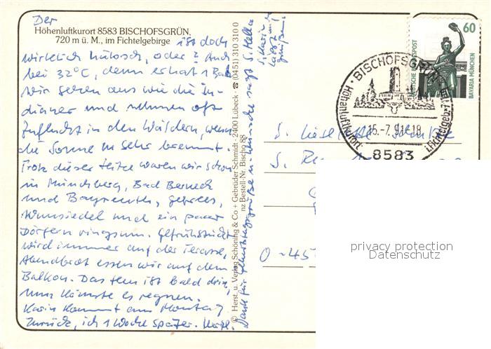 73071925 alte Postkarte Bischofsgruen Hoehenluftkurort im Fichtelgebirge postalisch gelaufen Erhaltung siehe scans [FriedD77] KatCode: 11110009472121
