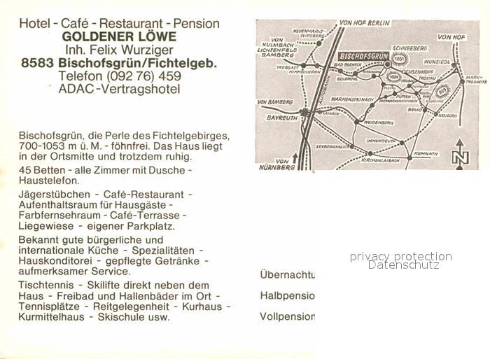 72855661 Bischofsgruen Hotel Goldener Loewe postalisch nicht gelaufen Werbekarte (keine Postkarte) Erhaltung siehe scans [AndreD76] KatCode: 11110009472121