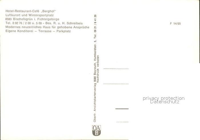 72105140 Bischofsgruen Hotel Restaurant Cafe Berghof postalisch nicht gelaufen Erhaltung siehe scans KatCode: 11110009472121