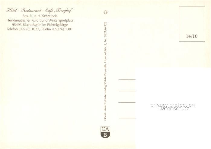 73161269 Bischofsgruen Hotel Restaurant Cafe Berghof postalisch nicht gelaufen Erhaltung siehe scans [KathaD81] KatCode: 11110009472121