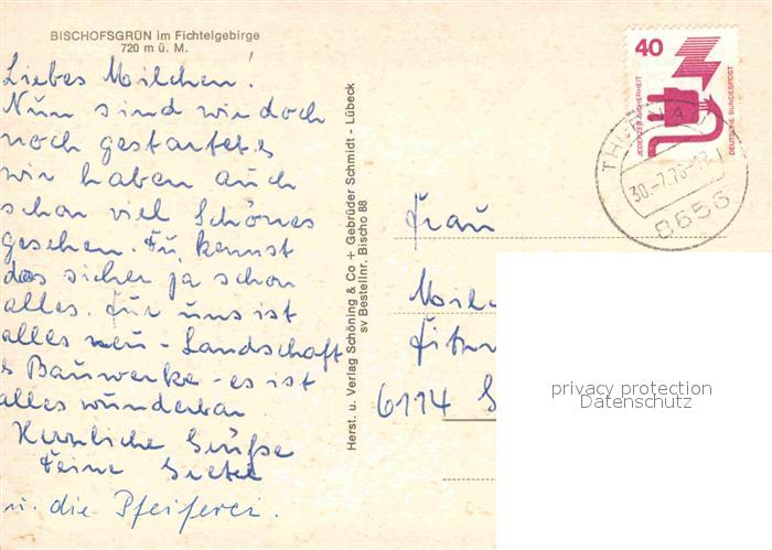 72825786 alte Postkarte Bischofsgruen im Fichtelgebirge postalisch gelaufen Erhaltung siehe scans [LiesaD40] KatCode: 11110009472121
