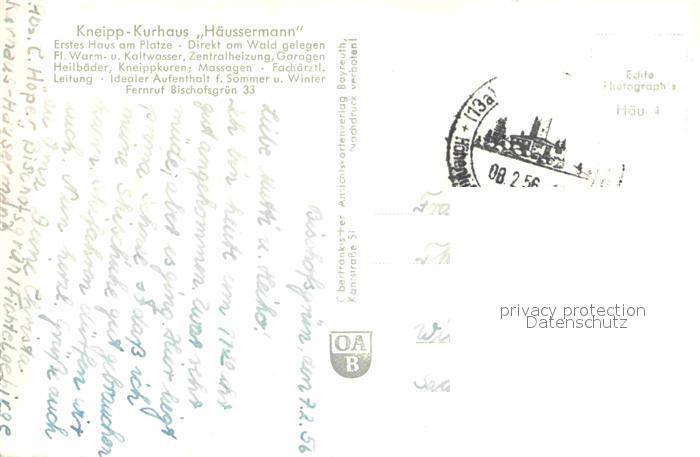 72843307 alte Postkarte Bischofsgruen Kurhaus Haeussermann Panorama postalisch gelaufen Erhaltung siehe scans [KathaD81] KatCode: 11110009472121