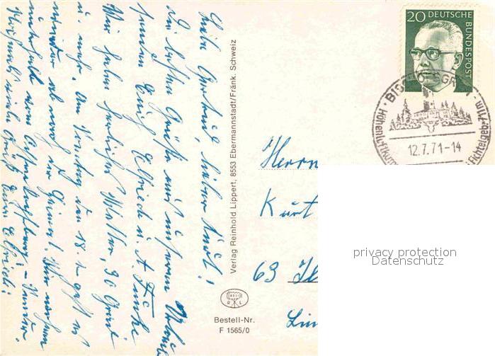 72629268 alte Postkarte Bischofsgruen Kurpark Panorama Brunnen Schwimmbad Hauptstr Geschnitzter Wegweiser Ochsenkopflift Asenturm postalisch gelaufen Erhaltung siehe scans [WerneD78] KatCode: 11110009472121