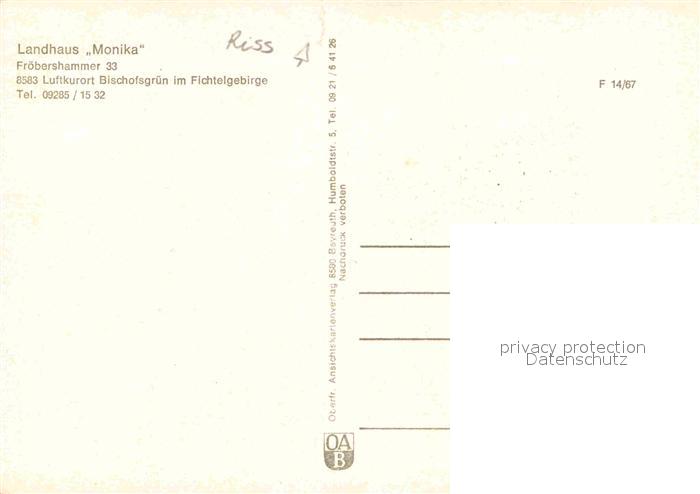 72856817 Bischofsgruen Landhaus Monika postalisch nicht gelaufen Erhaltung siehe scans [AndreD76] KatCode: 11110009472121