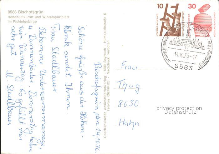 72322472 alte Postkarte Bischofsgruen LVA Hoehenklinik postalisch gelaufen Erhaltung siehe scans KatCode: 11110009472121